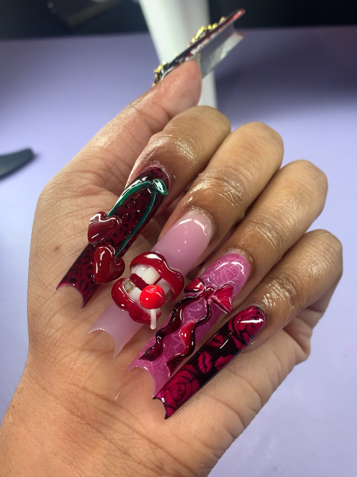 Three years ago, McFarlane earned her certification in acrylic application from Empress Nails (IG @empressstudioyeg and @officialempressacademy), a local nail technician whom she admired. Getting certified opened practical doors for her, such as being able to purchase professional products from supply stores in Edmonton. It also altered her perspective on the technical aspects of nails. Initially, she primarily focused on the designs, but her training enabled her to appreciate the importance of structure and foundation.